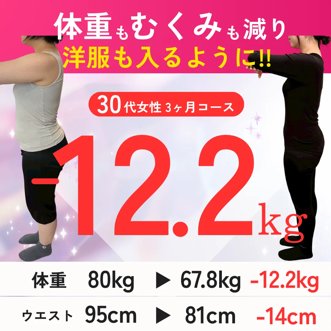 運動と食事制限をご自身で頑張ったが、全く痩せなかったお客様!着たい服が着れました!と嬉しいお言葉♪